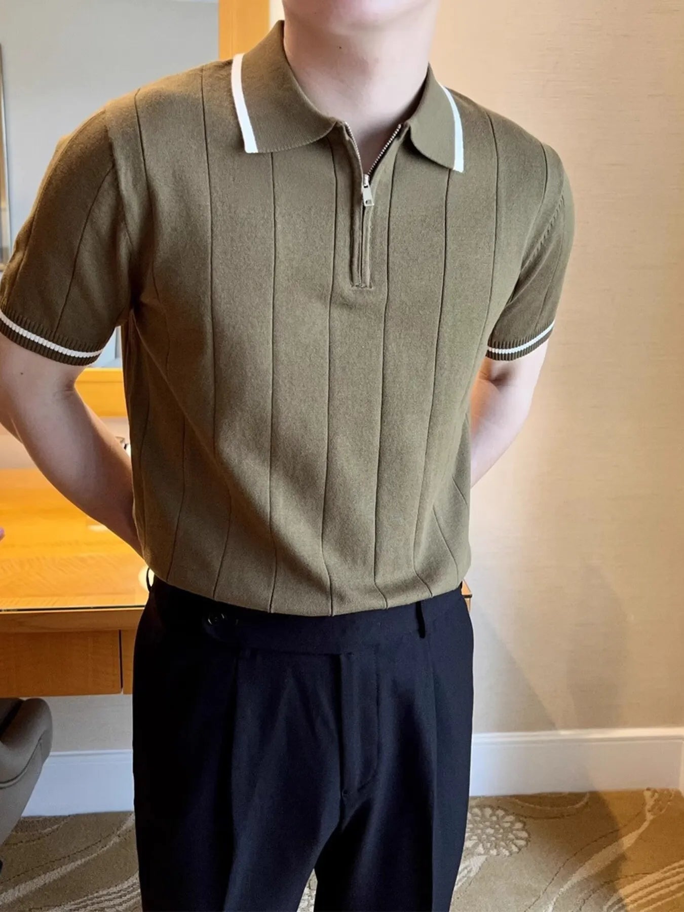 Men's Full Size Classic Zip Collar Short Sleeve Polo Shirt Plus Size
